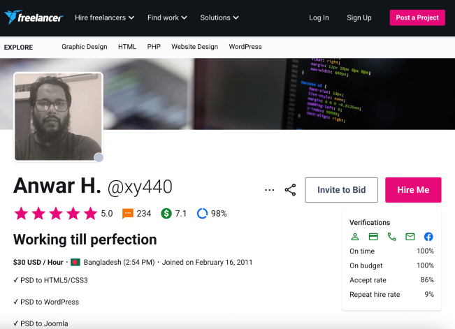 Delivered 230+ WordPress and front-end projects with a perfect 5.0-star rating.
